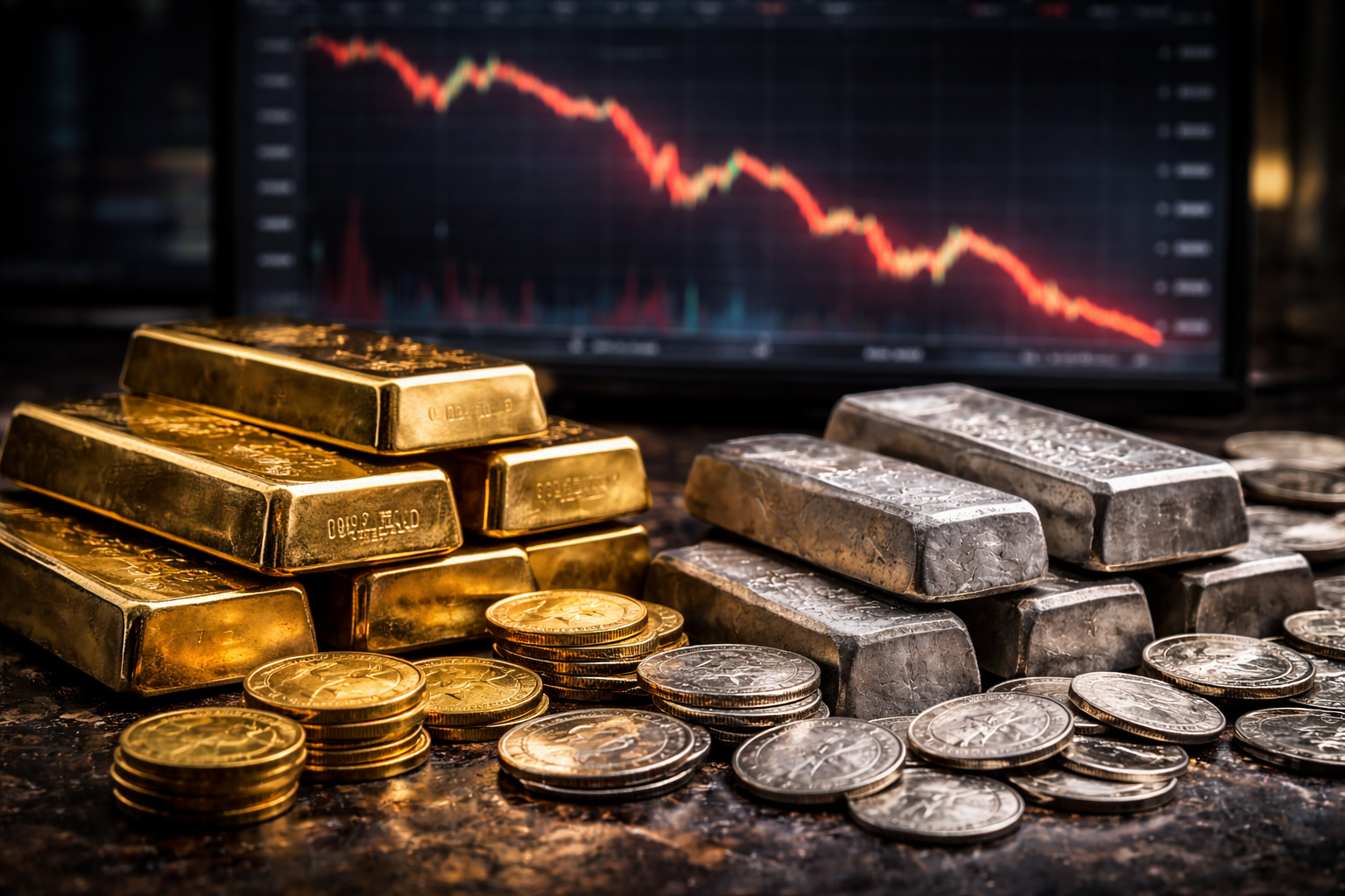 Precious metals experienced a sharp decline in price on Thursday, with both gold and silver falling amidst a broad market sell-off.